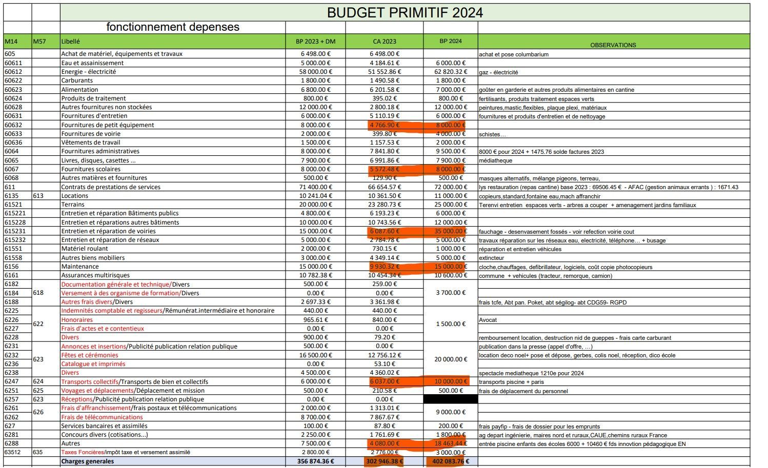 Pourquoi les dépenses de base de la commune peuvent passer de 300.000€ en 2023 à une prévision de 400.000€ pour 2024? Manque de rigueur ou projet secret? Et, pourquoi un prêt alors qu'il aurait suffi de faire quelques économies?